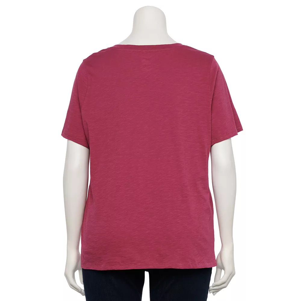 I was pleasantly surprised by the quality of this tee. The Plus Size Sonoma Goods For Life® Everyday V-Neck Tee fits well and is very comfortable. The fabric feels durable, and the V-neck adds a nice touch of style. It’s perfect for layering or wearing on its own. I’ll definitely be purchasing more in different colors!