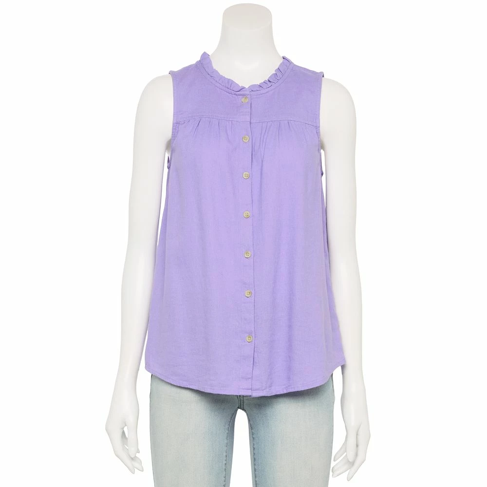 Go for a classic look with this women’s button-front ruffle tank from Sonoma Goods For Life.
