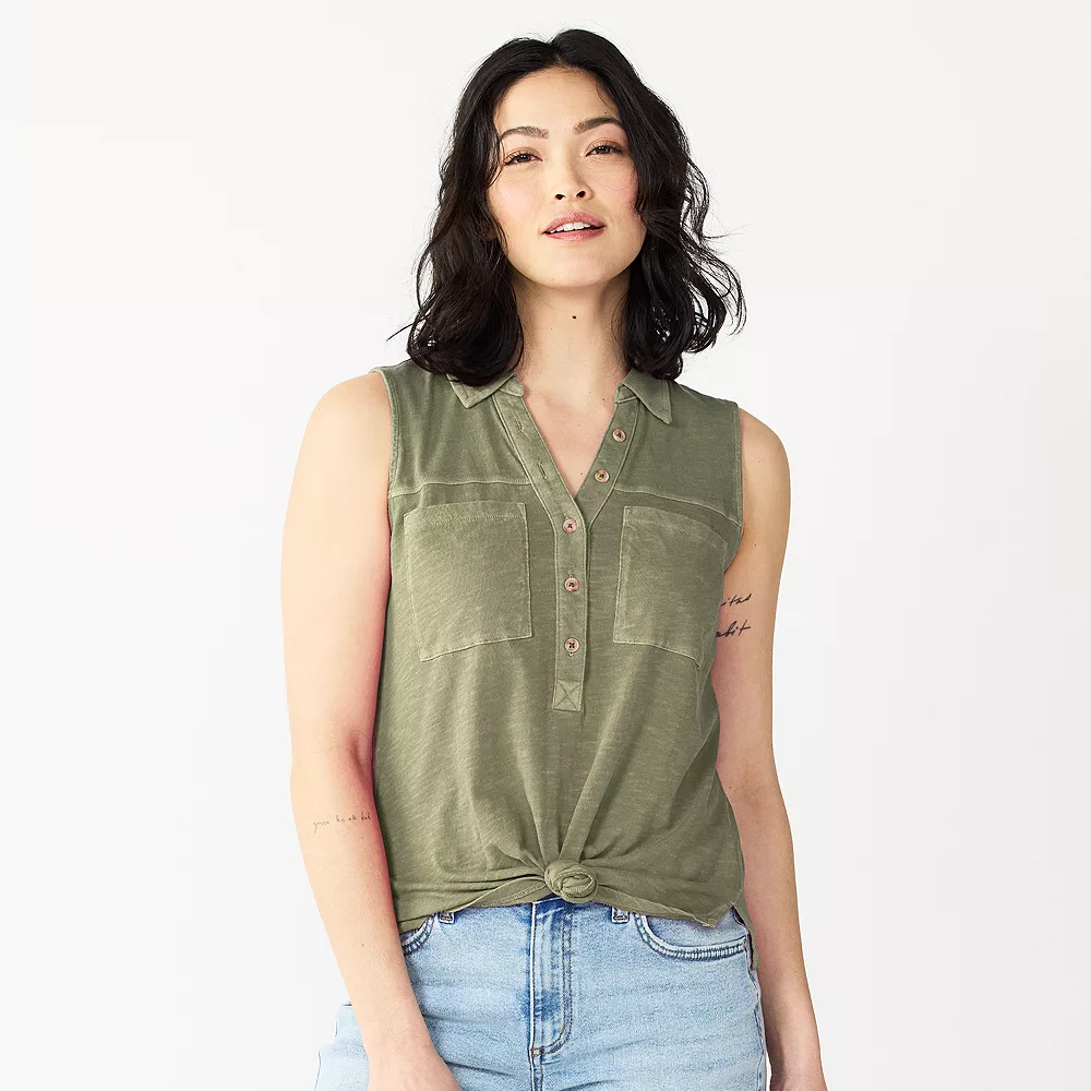 Elevate your look with this women’s popover utility v-neck tank top from Sonoma Goods For Life.